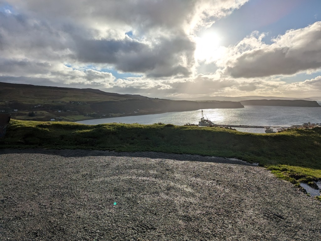 Next we headed to Uig, a little town on the Northwest corner of the island. We checked out Uig Pottery which is a locally owned family store where they sell a variety of handmade goods. We found several wonderful trinkets to take home. I always like to buy locally made things when I travel. It brings a little bit of that place with you and gives you memories of your travels whenever you see it. After shopping we needed some refreshment so we got a recommendation for the restaurant in Uig Hotel. Located right across the street from the seaside cliffs the hotel has amazing views. Mom and I got fish chowder and Scott got a fish pie. All with fresh fish of course. The chowder was excellent and the chunks of salmon just melted in my mouth. It was creamy but not heavy. It was just what we needed to regain some strength after sight seeing. After that we headed back to the hotel to rest before dinner.