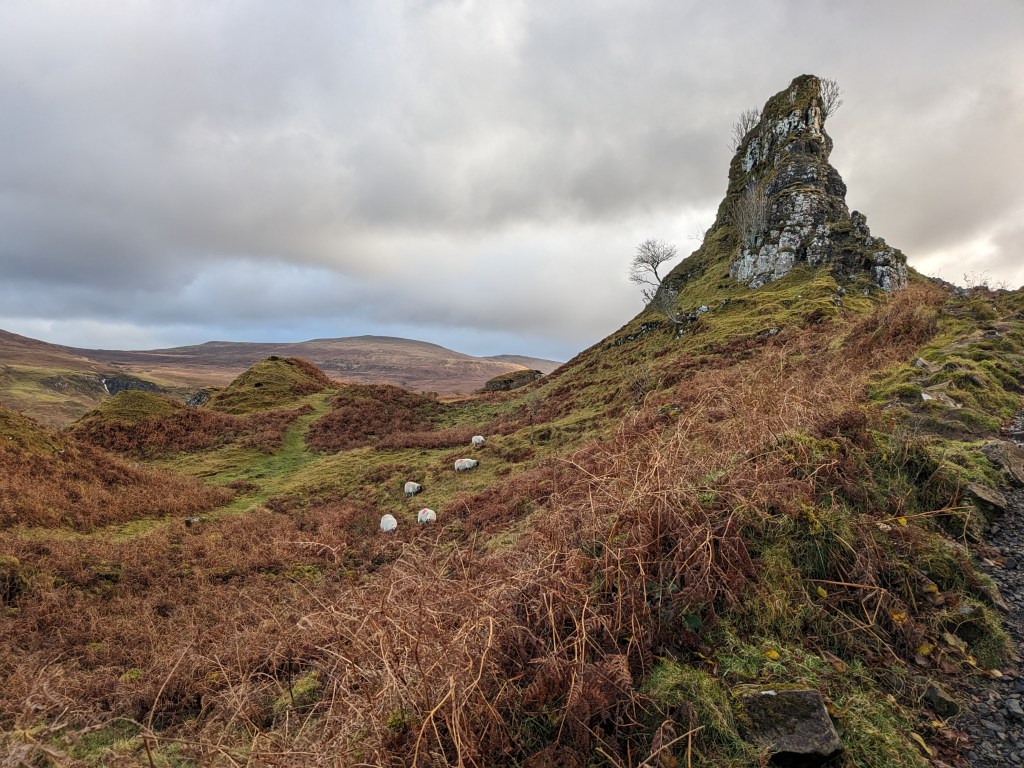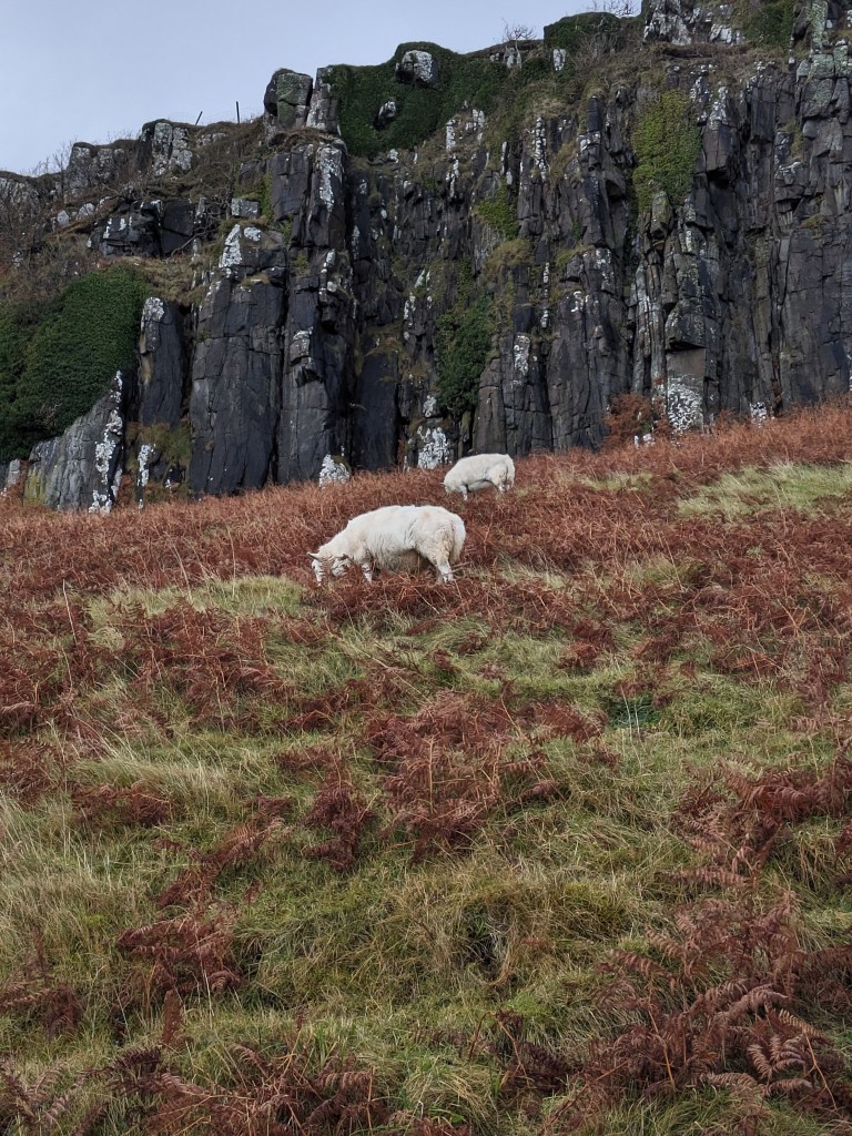 Next stop was Kilt Rock and falls. This is a volcanic rock that has folds in it like a kilt and a beautiful waterfall coming off of the cliff. At almost every stop we could see sheep grazing peacefully. So of course we had to try and get as many pictures as possible.