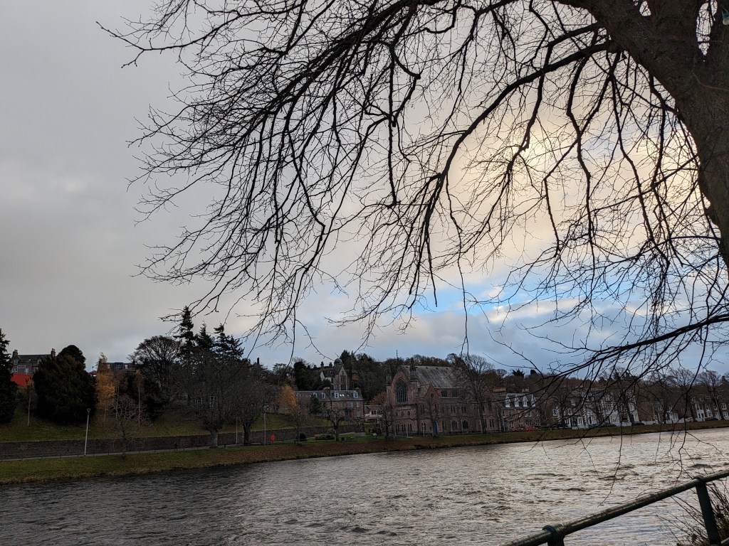 After shopping, I decided to go on a little walk on my own. I found my way to the River Ness and followed it for a while before crossing a little bridge. I then walked down the other side of the river for a while. The weather today has been warmer but the wind has been pretty intense. The river was very choppy as I walked and I watched the yellow and orange leaves being blown in all directions. I saw many other people walking along the streets lined with old stone houses and several churches. I stopped in a little cafe to get a hot chocolate and continued on. I then found a nice little bench on the river to sit while I sipped my hot chocolate bracing myself as the wind blew. I watched the water and the birds. I watched people walking by themselves and with their dogs. It made me miss my sweet puppy Sherlock at home. But still I felt at peace with the scenery in front of me and my warm drink. It’s little moments like these that I remember most from traveling. Little peaceful moments that are just simple.
